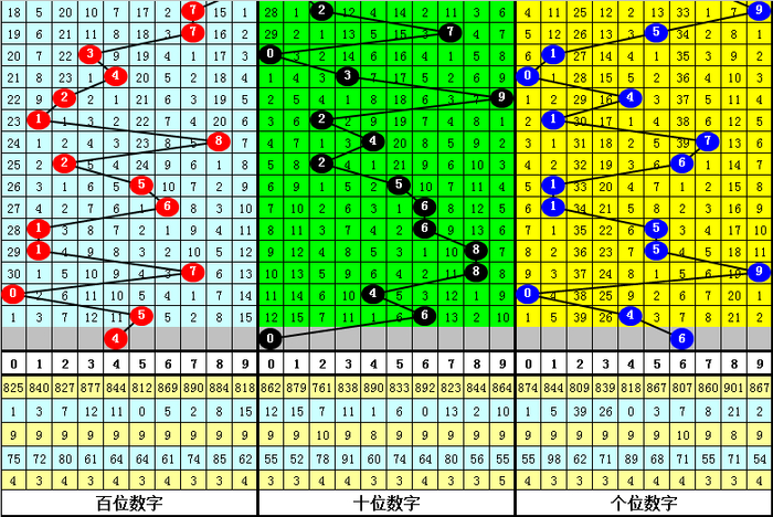 百位分析:上期百位开出奖号:5,最近9期该位奖号大小比为5:4,其中大号5出现2次,6、7、8出现1次,9出现0次,小 号1出现2次,0、2出现1次,3、4出现0次,本期百位看好小 号,精选一码4。