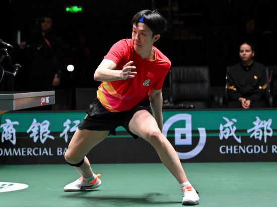 12月1日,中国队选手王楚钦在男单比赛中。新华社记者 胥冰洁 摄