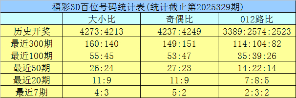 330期龙九福彩3D预测奖号:012路比分析