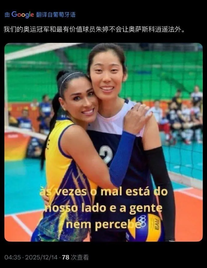 赛后,多位巴西球迷也在社媒盛赞朱婷的证明,以至直言我方此刻再次重温了里约奥运会时对阵中国女排的恶梦:“每次看到朱婷与巴西球队交手,我皆会思起我不雅看体育比赛时最哀悼的日子之一!”;“咱们的奥运冠军和最好球员,不会让奥萨斯科放浪法外!”;“朱婷的手脚确实是排球选手中最赏心悦计划,尤其是她的弹跳力!”
