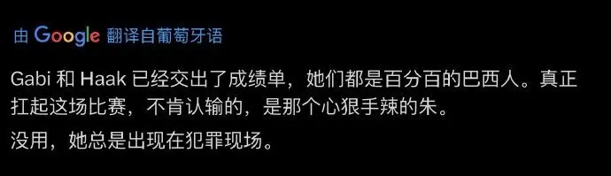 还有不少巴西球迷直言朱婷才是科内利亚诺确切的中枢:“朱婷的证明相配出色,在球队气象最倒霉时,只好她能历久很好布置压力!”:“天然加比和哈克得分更高,但确切扛起这场比赛何况不愿认输的,只好阿谁狼心狗肺的朱婷!”;“朱婷独自一人扛起科内利亚诺这艘巨舰,幸免球队提前出局的无语!”