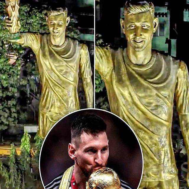 加尔各答径直整了个大手笔,一座21米高的梅西雕像立在城市里,造型是捧起闲散神杯的那帧画面。