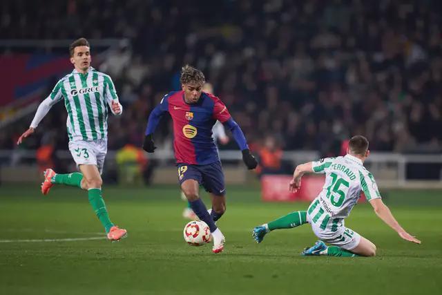 北京时期 12 月 7 日凌晨 1 点 30 分,西甲第 15 轮,巴萨客场挑战贝蒂斯。"圆神"安东尼和亚马尔在边路对飙,巴萨冲击西甲 6 连胜,陆续踏实榜首宝座。费尔明复出,巴萨的首发 11 东说念主基本敲定。