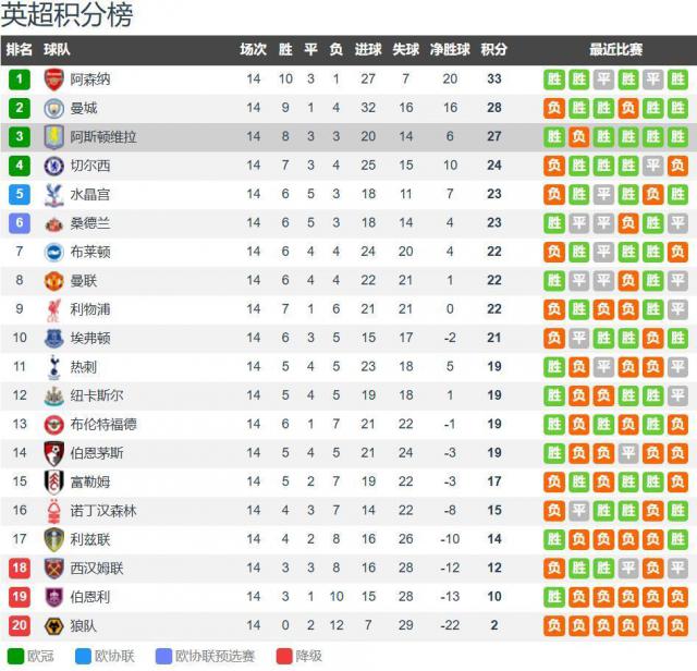 北京技术 12 月 6 日晚上 20:30,英超第 15 轮迎来前三大战,排行第三的阿斯顿维拉主场迎战领头羊阿森纳。